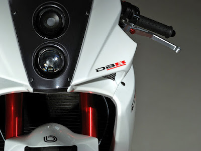 La DB8, sin embargo, no es una versión de la DB7 biposto, se ha trabajado mucho para crear una moto distinta, adaptada a su nuevo target, mucho más polivalente. Las diferencias son básicamente tres. Por un lado el motor, la DB8 monta el Testastretta Evoluzione de 1198,4cc con inyección de la marca Walbro, típica en la marca Bimota, que entrega una potencia máxima de 170cv a tan solo 9.750rpm; en la parte trasera, se ha montado un subchasis en aluminio, que une ligereza y resistencia para poder montar el asiento del acompañante, éste en caso de entrar en pista o de quedarte sin acompañante, no todo es para siempre, puede ser sustituido fácilmente por uno de carbono, mucho más ligero y deportivo; por último la amortiguación, se ha montado una horquilla invertida de 43mm totalmente regulable de la marca Marzocchi y un eficiente monoamortiguador trasero ExtremeTech, ambos equipos específicamente tarados para un uso compartido, pero no os confundáis… esto es una Bimota y está hecha para ir fuerte, así que no le contéis películas a la parienta y decidles claramente que eso de ahí atrás es un palomar, bonito, pero eso…un palomar.