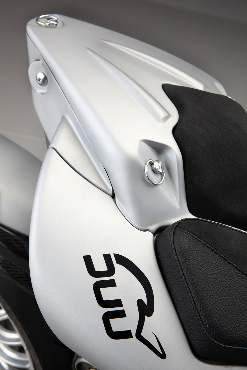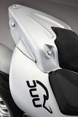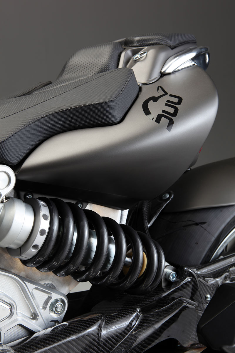 Como evolución de la Vun , anterior proyecto de este pequeño fabricante milanés, esta naked “Premium”, como les gusta denominarla a sus creadores, hereda su minimalismo extremo, todo lo que no esté para mejorar su comportamiento y manejabilidad es desechado. Pero en este caso hay un cambio drástico en lo que al propulsor se refiere. En la Vun (uno, en el dialecto de la zona) se monta un liviano monocilíndrico Rotax de 652 cc, que entrega 54cv de potencia para un peso de 136 kg. Con la Duu , la elección del motor ha sido mucho más pasional, Roberto Crepaldi y sus socios se han decantado por el nuevo S&S X-Wedge, un bicilíndrico montado a 56º, no en los ya clásicos 45º de este fabricante americano, que cubica 1.916cc, dispone de inyección electrónica y que cumple con todas las normas anticontaminantes europeas. Las prestaciones son una auténtica barbaridad, 97 cv (71 Kw) a 5.100 vueltas y un par de tractor que supera los 140 Nm desde las 2.500 rpm hasta las 4.700. El pero, es que este motor penaliza el peso final del conjunto, quedando entorno a los 245 Kg en seco, muy lejos del peso de su hermana de marca.