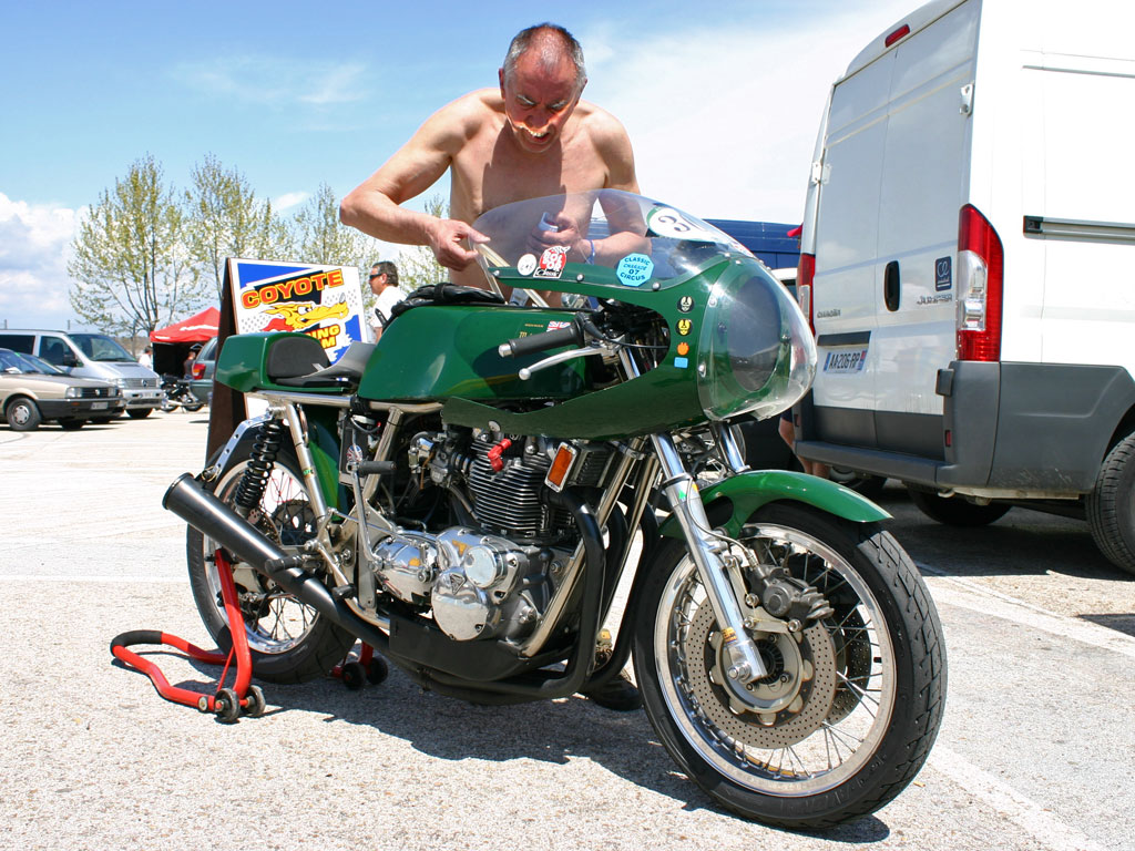 Así, entre tandas y alguna visita al bar o a cualquier máquina de latas, la gente visitaba el mercadillo o se perdía por el paddock donde los inscritos tenían montados sus pequeños boxes. Allí compartían lugar con algunos clubs, como los Coyotes de Francia, motoclub que hace una interesante reunión en Nogaro, el Club Sanglas, el Moto Club Impala o el Bimota Club Catalunya, donde vimos también socios de su homónimo francés.