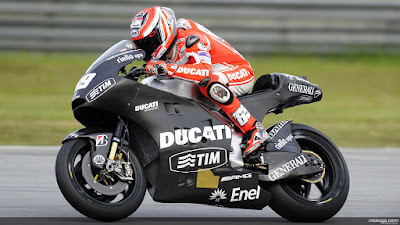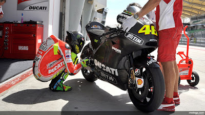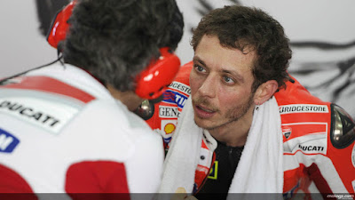 Tras el primer día de entrenos, Rossi ofrecía a los seguidores de Ducati un 5º tiempo como bueno, comentaba que la moto era más fácil de girar, que podía apurar más las frenadas… en resumen que la afrenta de llevar un chasis Deltabox había merecido la pena porque solo estaba a 7 décimas del primero, Jorge Lorenzo.